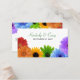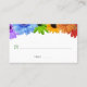 An assortment of flowers in the colors of the rainbow make a beautiful frame for this rainbow bouquet wedding place card. Daisies from red to purple highlight the customizable text. Add the couple's names and event date on one side. The reverse is for writing a name and table number with the flowers on top. Perfect for a springtime or any rainbow-themed wedding! Available with matching products.