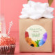 An assortment of flowers in the colors of the rainbow make a beautiful frame for this rainbow bouquet wedding sticker. Daisies from red to purple highlight the customizable text to help make your wedding the most unique it can be! Perfect for a springtime or any rainbow-themed wedding! Use as envelope or package seals, a favor or use them as a thank you to close favor bags or on other items. Available with matching products.
