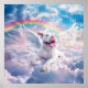 A radiant, smiling white pitbull with angelic wings is gracefully perched on a fluffy, shimmering cloud in a serene, heavenly sky. The dog's eyes sparkle with joy and peace, as if embodying a sense of eternal happiness and contentment. The wings are soft and delicate, glowing with a gentle luminescence that adds to the ethereal atmosphere. Surrounding the dog, the sky is a dreamy palette of soft blues and golden hues, hinting at the warmth and tranquility of pet heaven. This image symbolizes the Rainbow Bridge, where beloved pets find eternal rest and happiness, forever watching over their earthly companions with love and devotion.