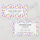 These business cards feature a confetti pattern of bright rainbow colored polka dots. Personalize the text with your information.