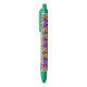 Very nice blue, or black ink pen. I will be buying more. The print was fine. I can easily see the print. The flowers look great.