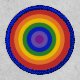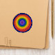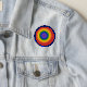 Celebrate your LGBTQ pride with a rainbow colored bullseye. The outermost circle is a royal blue stitched border, followed by red, orange, yellow, green, blue, indigo, and ending with violet in the center. You can change the size, border color, and adhesive options in the sidebar.