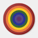 Concentric circles form a rainbow colored bullseye. The outermost circle is red, followed by orange, yellow, green, blue, indigo, and ending with violet in the center. Celebrate your LGBT pride or your love of rainbows!