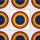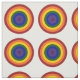Stylish geometric fabric features concentric circles forming rainbow colored bullseyes. The outermost circle is red, followed by orange, yellow, green, blue, indigo, and ending with violet in the center. Make accessories that celebrate your LGBTQ pride or your love of rainbow colors.