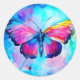 A beautiful rainbow butterfly with a variety of blue hues in a watercolor background. Add your own text to personalize.