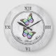 Add an elegant touch to your home with a Rainbow Butterfly Floral Personalized Acrylic Wall Clock. Clock design features a pair of vibrant butterflies resting on a white floral vine against a light gray grunge background. Additional gift items available with this design as well.