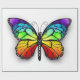 Realistic monarch butterfly in all the colors of the rainbow on a white background. Rainbow butterfly.