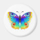 Rainbow, realistic, artistically drawn, bright colors peacock butterfly with textured detailed wings on white background. Rainbow butterfly.