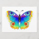 Rainbow, realistic, artistically drawn, bright colors peacock butterfly with textured detailed wings on white background. Rainbow butterfly.