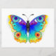 Rainbow, realistic, artistically drawn, bright colors peacock butterfly with textured detailed wings on white background. Rainbow butterfly.