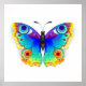 Rainbow, realistic, artistically drawn, bright colors peacock butterfly with textured detailed wings on white background. Rainbow butterfly.