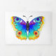 Rainbow, realistic, artistically drawn, bright colors peacock butterfly with textured detailed wings on white background. Rainbow butterfly.