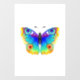 Rainbow, realistic, artistically drawn, bright colors peacock butterfly with textured detailed wings on white background. Rainbow butterfly.