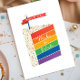 Nothing says party like a colorful rainbow birthday cake. You may personalize this birthday card with your own message.