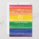 An invitation inspired by a rainbow layer cake.