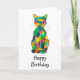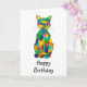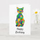 A rainbow cat painting with the message "Happy Birthday" on the front. Inside reads: "Have a purrfect birthday!"