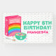 Are you planning a cereal theme party for your child? The Rainbow Cereal Birthday Party Banner designed by Enchantfancy Design Company features a bowl filled with milk and rainbow cereal alongside a pink cereal box with a rainbow on the front. Star accents add a fun touch to this adorable design. It is perfect for children's breakfast parties and pajama parties.