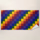 Celebrate your LGBTQ Pride, support, or love of color with this cool custom beach towel featuring a checkered rainbow pattern. Each row of rainbow colored squares shifts one square to the right to create a colorful checkered pattern. The squares of red, orange, yellow, green, blue, indigo, and violet form a sequence of diagonal stepped stripes.