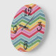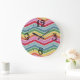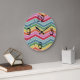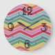 A bright rainbow chevron pattern with whimsical clock numbers adds a touch of color to your home or office.