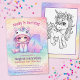 Rainbow chibi girl, Unicorn 4th birthday Invitation