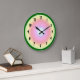This decorative wall clock features a lovely luminous circular design in pastel rainbow colors of green, yellow, pink, blue and white. The numbers can be cleared if a simpler design is preferred.