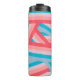 This thermal bottle has a striped design of groups of five stripes crisscrossing each other across the design blue, pink, peach, and coral. If you like the design but prefer different colors, message me.