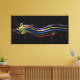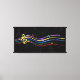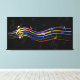 Large 48x24 music canvas print Perfect gift for the music lover with a design featuring musical notes and clef in the colors of the rainbow, with a background of dark gray musical notes on black . Easy to customize by adding your own text. Visit the store to see the collection of gifts and stationery featuring this musical design.