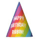 Add the perfect rainbow touch to your party with these custom message rainbow stripe party hats. The classic party hats have a bold rainbow stripe background and your own choice of message in distressed white lettering.