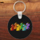 Keychain with illustration of rainbow dragons in the colors of the LGBT (lesbian, gay, bisexual, and transgender people) rainbow stripes pride flag, fantasy design on black background