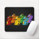 Mousepad with illustration of rainbow dragons in the colors of the LGBT (lesbian, gay, bisexual, and transgender people) rainbow stripes pride flag, fantasy design on black background