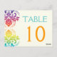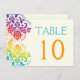 Rainbow colors damask wedding table number