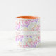 This fun design features two linked heart patterns. The top larger pattern has a pastel rainbow color heart and behind are linked black outlined hearts with template text on both sides of the handle. Personalize the text or click customize to select a font style, size, and color you prefer. Select from a variety of mug styles to fit your taste.