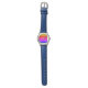 This watch is exactly what I expected. It is easy to set the time and the fit is perfect! The blue band is great for a boy and the sports theme was a hit!