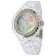 Art features overlapping hearts in a rainbow of colors. The heart images are both drawn and painted in watercolor. A single large heart defines the border between the drawing and painting heart images. The art is a tribute to the community of love and friendship in our lives as it overlaps into the world. Make customized love heart watch designs with your personal messages and/or photos. Use the "customize it" button. The hearts art makes great personalized custom wrist watch gifts!