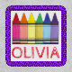 Patch features a row of rainbow-colored crayons on a white background. Just personalize with your information.