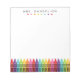 A cute colorful notepad design for a gradeschool teacher. Simple name in black block lettering with a rainbow crayon border. Perfect for kindergarten or elementary teachers.
