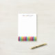 Cute colorful post it notes for a grade-school teacher. Simple name in black block lettering with a rainbow crayon border. Perfect for kindergarten or elementary teachers.