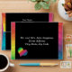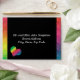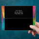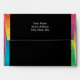 A simple yet elegant design that puts the important information front and center in an easy-to-read fashion. The striking black background bordered by a splash of rainbow color makes this envelope hard to overlook in the mailbox! Chose any color you like for the background (shown here in black). You may choose from the provided heart or butterfly as your accent, or upload an image of your own choosing. Use the provided template fields to quickly personalize with your information. (If you prefer to hand-address the envelope, leave the text field blank.) Click "customize further" to change font, size, colors, and positions.