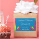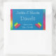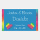 Tired of typical wedding colors? Try a touch of bright rainbow colors to liven things up! The background (shown here in blue) on this this simple yet elegant design can be changed to any color you want as can the text colors. Choose from either hearts (shown) or butterflies as the decorative accent on your labels. If you'd prefer something extra personal on your stickers you can even upload an image of your own choosing instead.