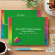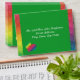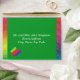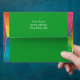 A simple yet elegant design that puts the important information front and center in an easy-to-read fashion. The solid background bordered by a splash of rainbow color makes this envelope hard to overlook in the mailbox! Chose any color you like for the background (shown here in a green). You may choose from the provided heart or butterfly as your accent, or upload an image of your own choosing. Use the provided template fields to quickly personalize with your information. (If you prefer to hand-address the envelope, leave the text filed blank.) Click "customize further" to change font, size, colors, and positions.