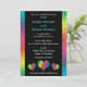 A simple yet elegant design that puts the important information front and center in an easy-to-read fashion. The modern black background bordered by a splash of rainbow color makes this invitation stand out! Choose any color you like for the backgrounds (shown here with black on the front and white on the back) and chose your own photo to make it truly unique. Use the provided template fields to quickly personalize with your information. Click "customize further" to change font, size, & colors and to reposition or delete items.