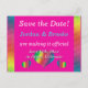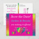 A simple yet elegant design that puts the important information front and center in an easy-to-read fashion. The solid background bordered by a splash of rainbow color makes this postcard hard to overlook in the mailbox! Chose any color you like for the background (shown here with hot pink on the front and white on the back). The back is pre-formatted for both the return and recipient address. If you prefer to hand-address your Save the Dates, simply leave the recipient address fields blank. Use the provided template fields to quickly personalize with your information. Click "customize further" to change font, size, colors, and positions.