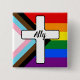 Faith and Pride together - a cross over a progress Pride rainbow flag. Proclaim yourself an Ally, or add your church name.