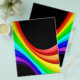 A colorful flyer template with a 3d curved rainbow or spectrum motif. The back of the flyer has a mirror image of the front design. Plenty of space to add text and other graphics. Suitable for a variety of uses.