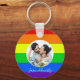 This bright rainbow anniversary gift features a custom LGBTQ engagement photo for a gay or lesbian couple who loves bold, colorful keychain. Personalize this cheery LGBT design with your romantic photograph, names, and occasion date.