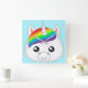 Rainbow Cute Kawaii Unicorn Face Head Square Wall Clock