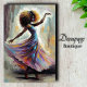 Transform your furniture pieces with this spectacular decoupage tissue paper featuring a dancer in motion. This dynamic design captures pure joy through a stunning palette of flowing purples, turquoise blues, and warm golds. The impressionistic brush strokes and movement create a sense of music and dance that brings energy to any furniture piece.