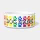Dog pawprints in the colors of the rainbow. Custom dog name bowls. Edit name to customize. Gift idea.