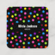 Designed to be personalized by you! These business cards feature bright confetti rainbow dots on a black background.