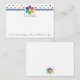 These colorful note cards feature rainbow polka dots, navy rick rack, and flower accents. This design is minimal and modern, and it will appeal to folks of all ages. Customize the text to fit your needs.